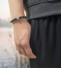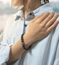 Crafted from natural volcanic stone, this Earth element bracelet embodies protection and stability. Its rough texture and vintage tone tell a story of resilience through time.