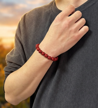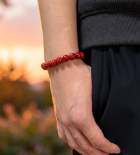 This Fire element bracelet features natural cinnabar beads with subtle translucence that glows under light. Bold and striking, it represents passion, courage, and unstoppable energy.